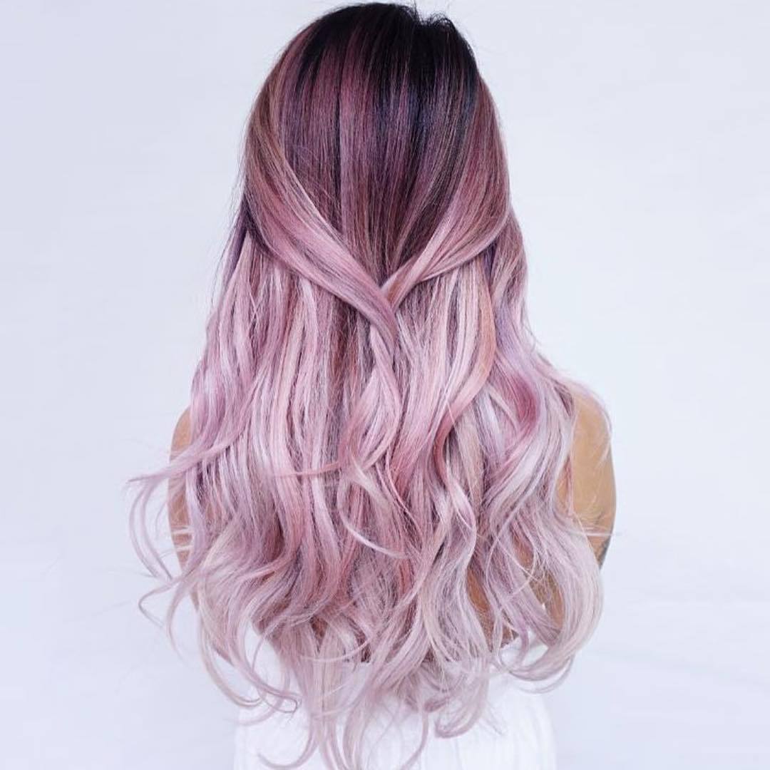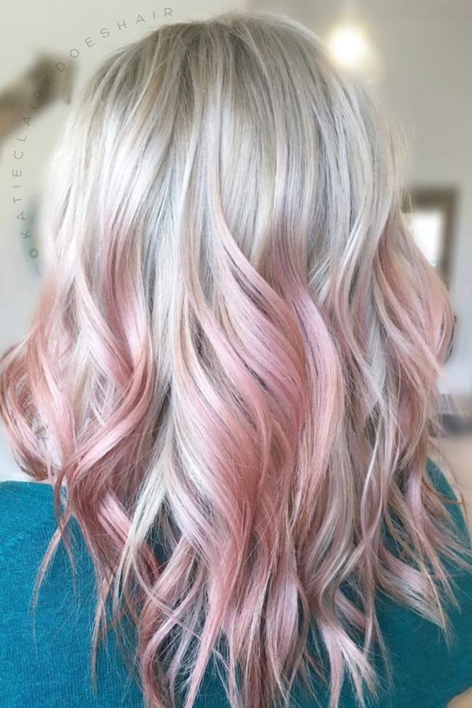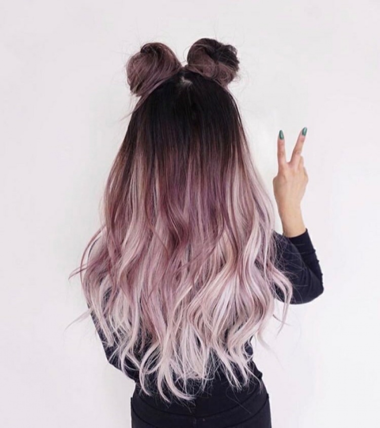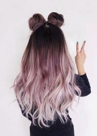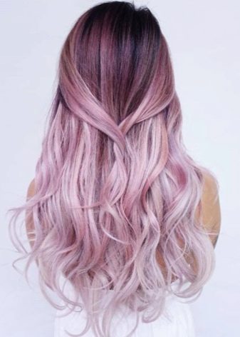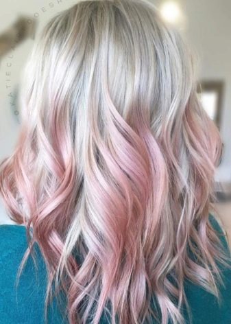 Like the ash-blue ombre, this option is an unusual painting. The transition comes from a natural color to a muted pink, like a haze. Most of all is natural blond or light brown hair. The effect is especially noticeable in daylight.