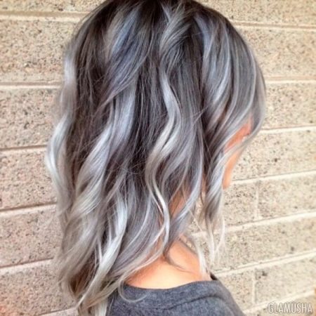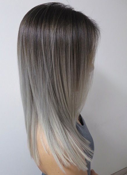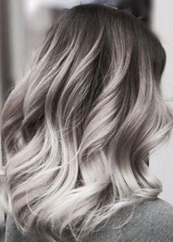 Ash ombre is a type of coloring, in which from the roots to the ends of the hair there is a gradual transition to a gray, ashen color.