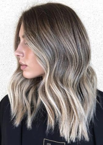 This coloring is more gentle, as it does not require a strong clarification of the tips. The main thing in this painting is a smooth transition to brown, and later to ash-brown. Despite the clearly blond shade, it goes to girls with a cold color type of face.