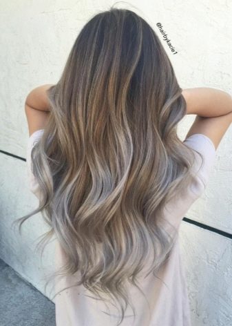 It is also called beige and ash ombre. With such coloring hair attached muted brown. It is an excellent option for brown hair and looks much more natural than other dyes.