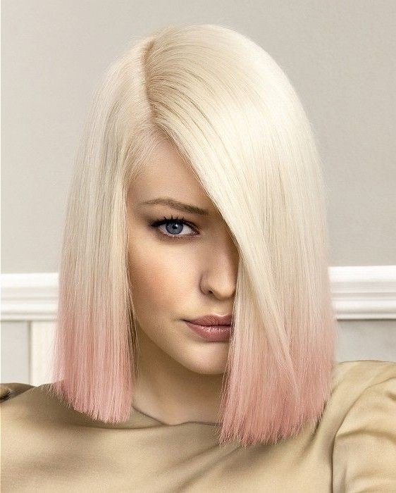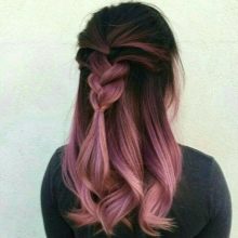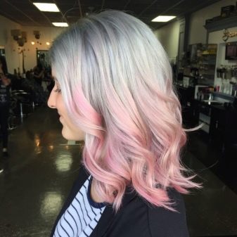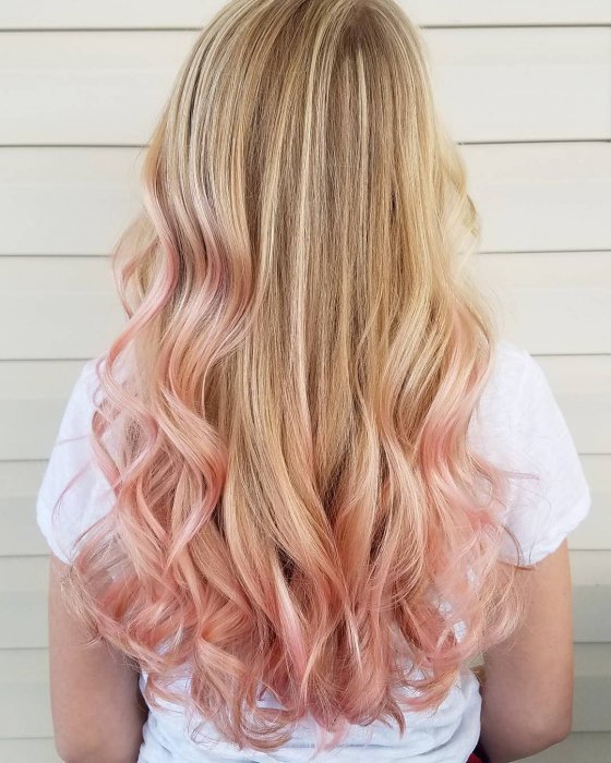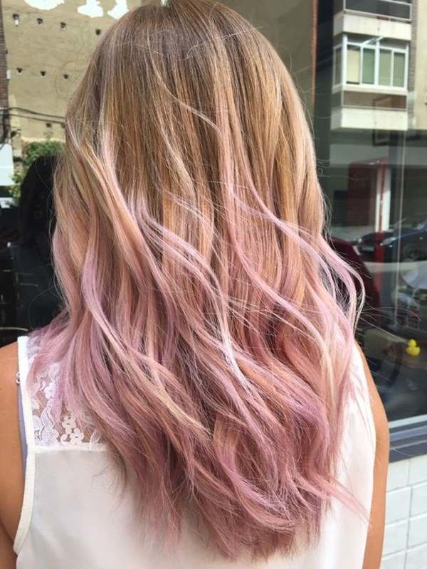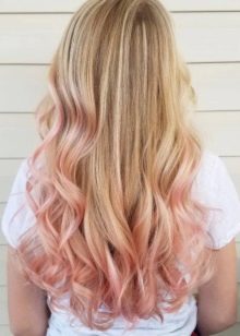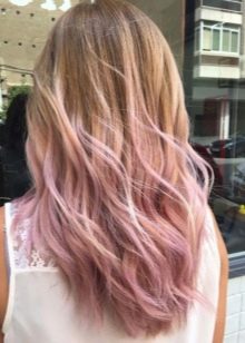 For owners of light brown hair with lighter roots, milk-pink color is perfect. It will stand out against the background of light skin and blue or pale gray eyes. In addition, this color will be to face women at any age. Also for blonde hair, you can use all the warm shades of pink. It can be gold or, for example, ashen.