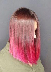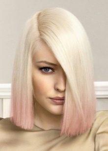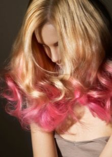 Ombre is the coloring of only the tips of the strands in a variety of colors. Lights can be pink, red, and even blue. In addition, this staining has many advantages: