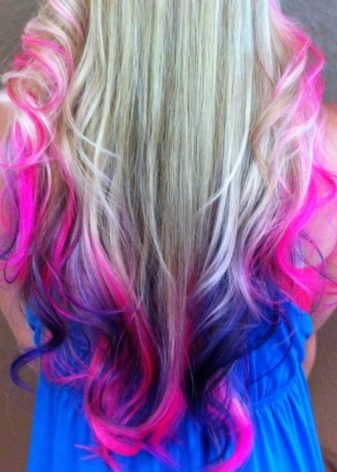 When everything is ready, the hair should be divided into three zones: the sides, the temples and the back of the head. Then in each of the zones you need to form one or even several tails. It will depend on whether the girl’s hair is so thick. Those representatives of the fair sex, who have dark hair, need to first lighten the part of the hair on which the paint will be applied.