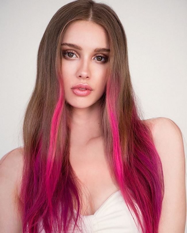 When choosing a bright pink shade, it is necessary, first of all, to conduct some experiments to find out whether it is suitable or not. This can be done with a spray or a conventional tint balm, and only making sure that this color is suitable, you can proceed to the painting itself. In addition, this shade will require that the style of clothing is fully consistent with it.