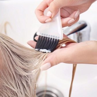 - If ammonia or hydrogen peroxide is included in the paint, then in no case can you use metal tools to apply the mixture on the head, as a chemical reaction can occur with sad consequences for the result of staining.
