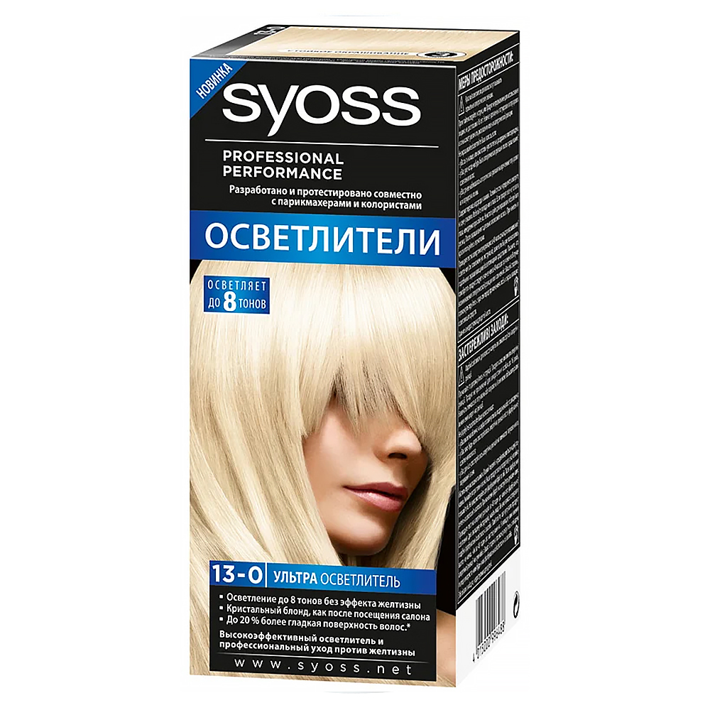 - Syoss professional performance 13-0. This paint can lighten hair by 9 tones. Contains ammonia and hydrogen peroxide. Despite its composition, dyes with hair care.