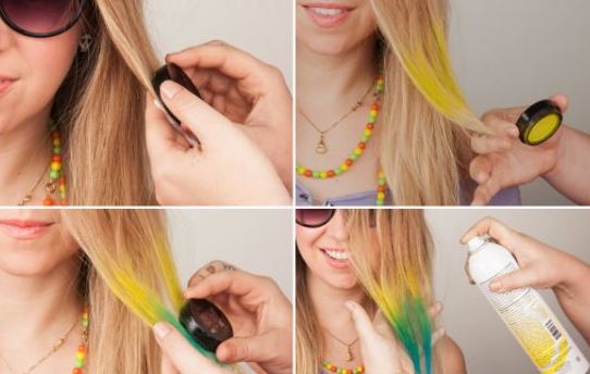 Although the color will hold until the first washing of the head, the use of such methods is simple, which means that you can change the shades at least every week.