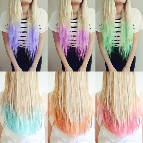 Dip dye staining is similarbut girls wishing to flaunt their bright tips for only a few days can use a less traumatic way. For example, it will be enough to color the strands with special chalk or colored powder.