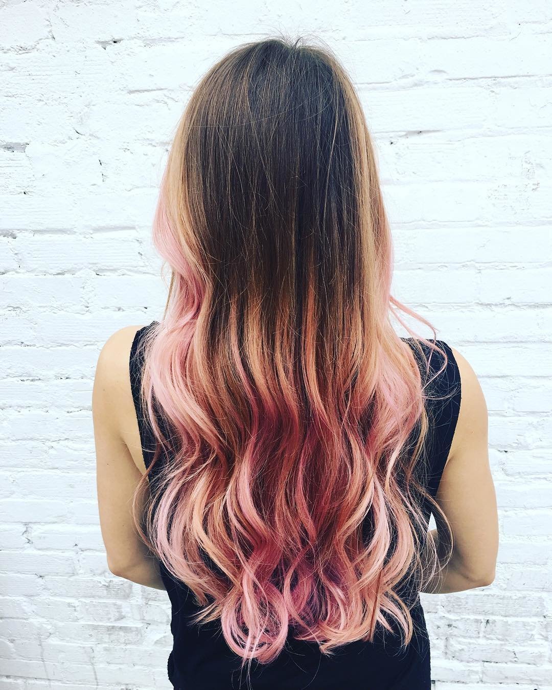 Dip dye popular with young girls, because this technique looks a little careless and very bright. It looks as if the ends of the hair were just dipped into paints of different colors, not caring about smooth transitions and respecting the gradient. Shades are always taken flashy and non-standard.
