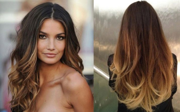 Ombre It is considered the most famous technique, the essence of which is that the color goes harmoniously from the base dark shade to light in the tip area. In this case, two more colors are used additionally. Painted in this way, the hair looks very natural and lively - the color of the hair “plays” in the light and shimmers.