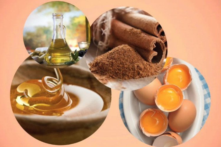 To prepare the mask, you need to slightly warm the butter and honey, then pour the cinnamon, enter the yolk and juice, mix thoroughly.