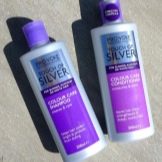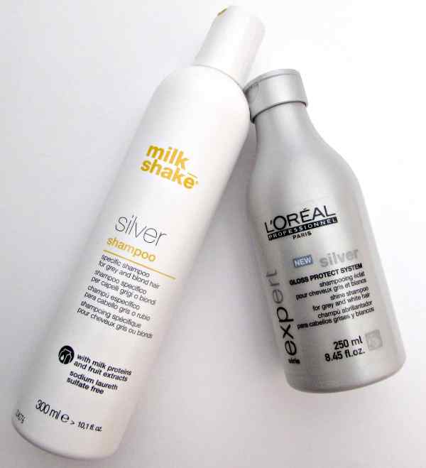 "Silver shampoo" with a violet pigment content helps to neutralize the yellowness and enhance the light tone. Such compositions are sold in many cosmetic departments marked Silver shampoo. Despite their high efficiency, they have one major drawback - when overexposed, the curls turn lilac. Special shampoos not only neutralize the yellowness of hair, but also additionally strengthen and protect curls.