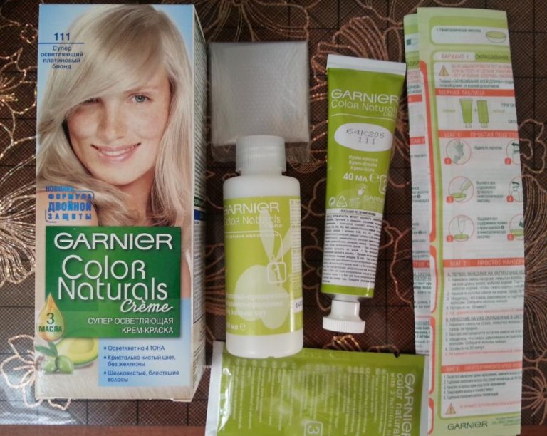 - Garnier Color Naturals Platinum Blonde brightens the hair without the additional effect of yellowness. The main disadvantage of this tool - loose texture and difficulty in extruding the composition.