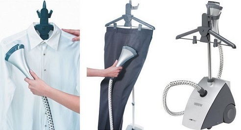 These devices compare favorably with the previous type of their characteristics. They are a water tank and telescopic rack.A hose goes from the tank to which the handle-steamer is attached (steam will be supplied through it). It may have several attachments or be the only one in the set.