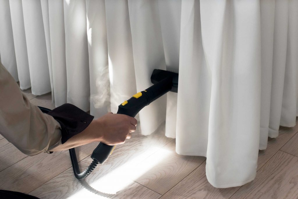 - Vertical arrangement, which is most beneficial for stripping hanging fabrics without removing them, for example, curtains and curtains, as well as bed linen.