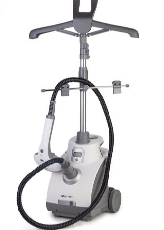 - Vertical device - compact, compact, easily stored anywhere. It is multifunctional, extremely powerful. With it, you can make a vertical ironing curtains and clothing, easily smoothes the coat. It is used both at home and at work. Quite rarely, the device is used for ironing on the ironing board.