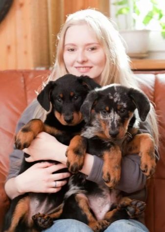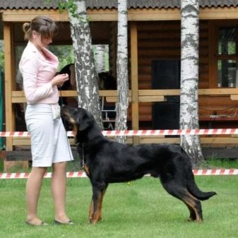 The bosom is a smooth-haired dog whose hair length is 3-4 cm. The back of the body (tail and paws) has a longer hair. The undercoat should be gray, soft, but not visible through dense guard hair. In the winter season, the undercoat gains extra density and stiffness. The color is black, with a red tan and stockings of red color. Breed easily recognizable by tan, which is located on the following parts of the body: