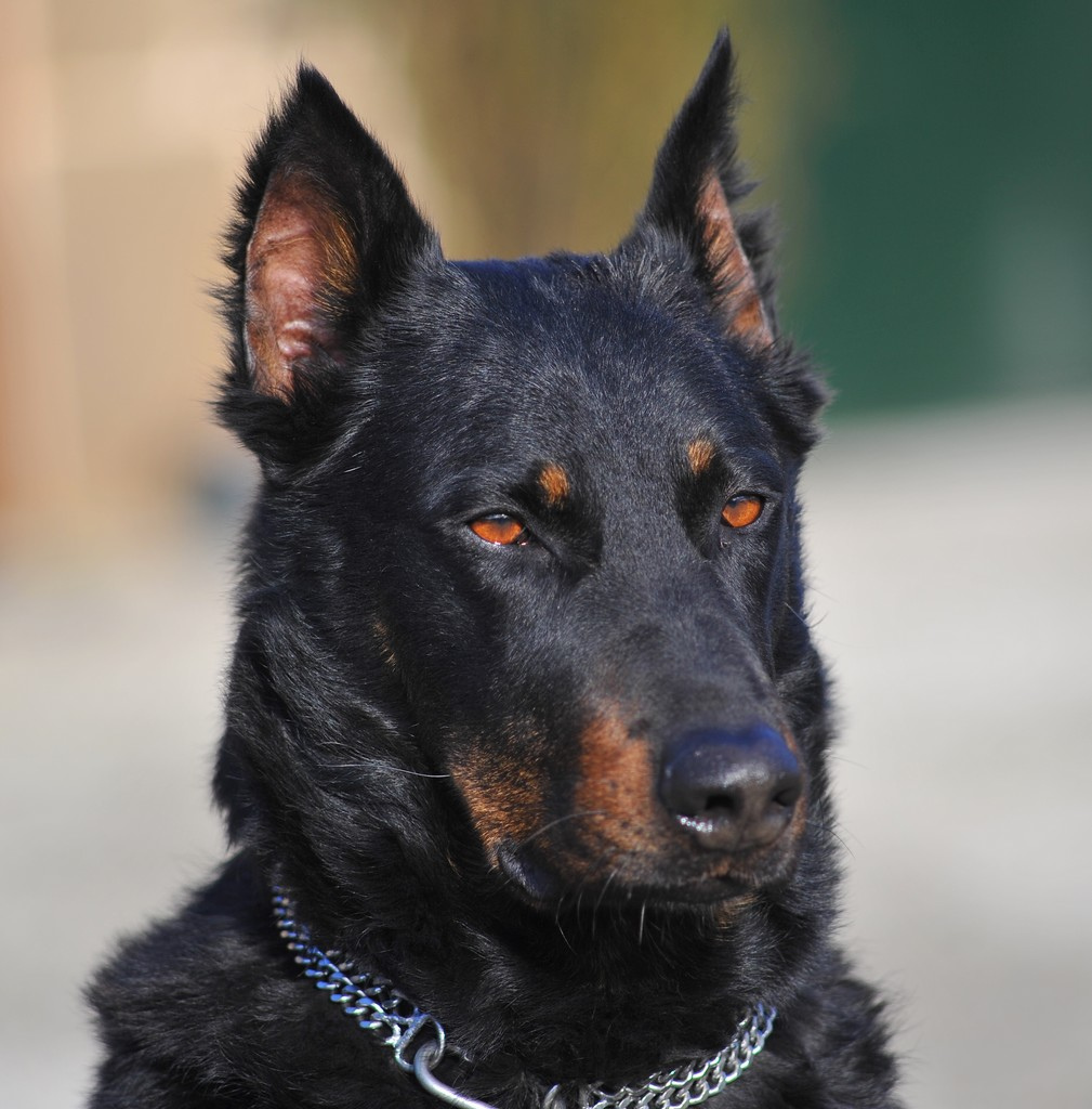 The head has elongated shapes with a characteristic clarity of lines. The shape of the skull is flat, the rounding on one side smoothly passes to the other. Nose black, cleft not allowed. Beauceron jaw is well developed, teeth are white and sharp. Lips are distinguished by black color and hardness. Bite type - cross. The eyes are elongated, the shape is oval, the color of the iris should have a dark brown color.