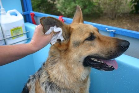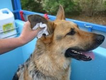 German shepherds are not particularly demanding to care, but their owners need to regularly monitor the condition of the teeth and ears of pets. It is recommended that teeth be thoroughly cleaned with a specially designed paste; periodically, dogs should be allowed to nibble on fresh bones. Ears are wiped with a wet swab twice a month.