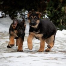 Healthy kids Shepherd Shepherd color confidently move and stand on their paws, perfectly oriented in the surrounding space, have a wise look, a clean and shiny coat. They are active and inquisitive, do not show cowardice and signs of aggression. The body of puppies is elongated, but not square. Ears in small shepherd dogs under the age of 2-3 months are hanging, if the tips of the shells are in a standing position, this is a sign of ossification of cartilage caused by abnormal calcium-phosphorus metabolism. Tail in puppies without kink and straight.