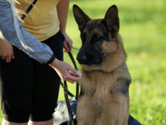 Mandatory for teaching are the commands "Nothing", "Fu". It is also important to wean the puppy from picking up from the ground. When the future shepherd will be 6 months old, she is taught to make such an accessory as a muzzle.