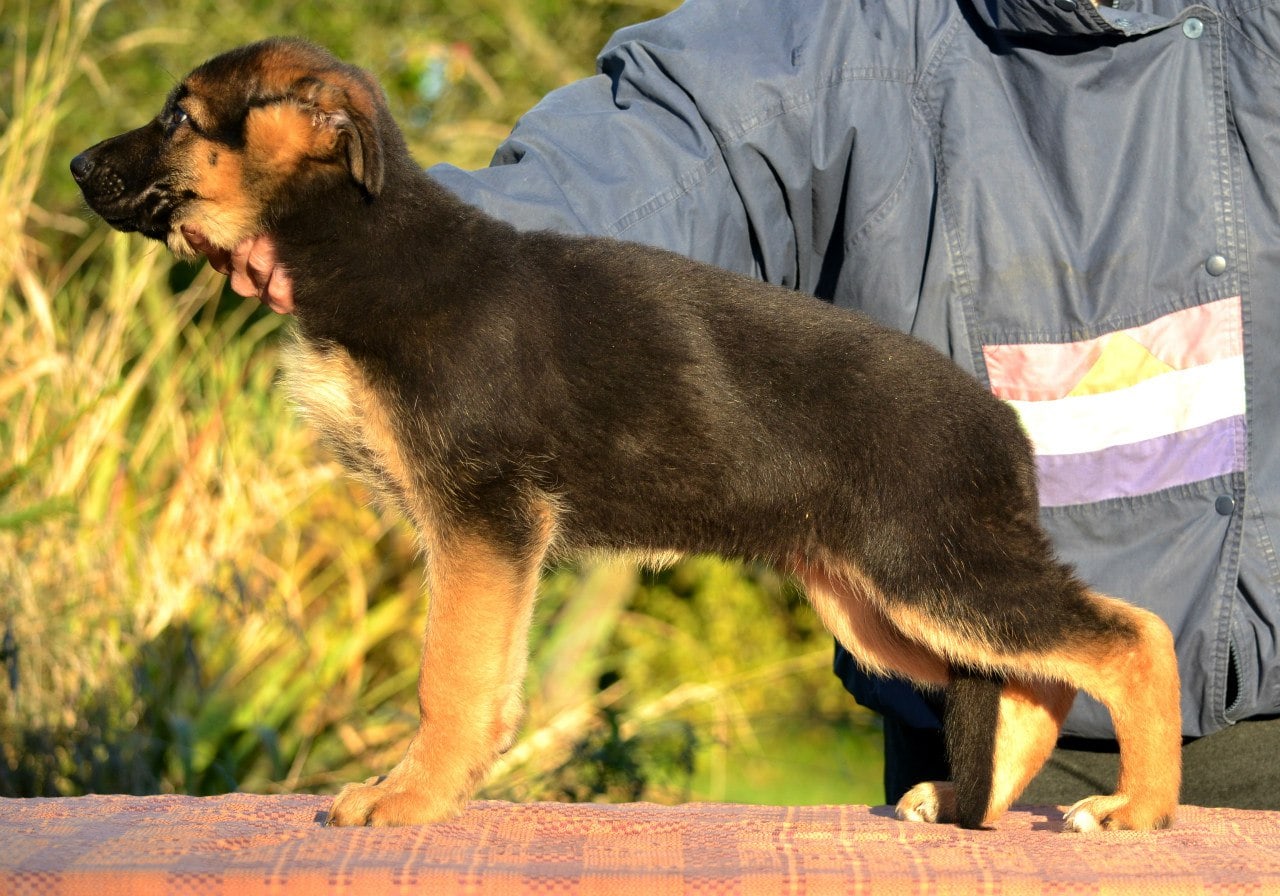 The main distinguishing feature of these German Shepherds is the presence of dark spots on the fur, which resemble the shape of a cheprak. Spots are placed on the back, shoulders, neck, withers and tail. They can be of various sizes and shapes, as well as be intensely and poorly colored.