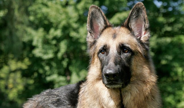 In the German Shepherd, the head should be wedge-shaped - this is a slightly extended prominent forehead, which gradually tapers towards the tip of the nose (only a black lobe is acceptable). Ears straight, erect and turned forward. Dogs of this breed should have well developed jaws with a scissor bite. The teeth are even, without obvious defects. Eyes almond-shaped, close-set, color acceptable from golden amber to dark brown.