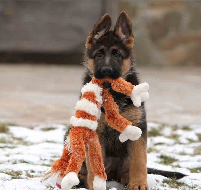 In no case, the material should not be dangerous, because the puppy will play in your absence. Small fragments of plastic, latex or rubber are very dangerous, small elements with which the dog can easily choke. Cheap Chinese toys are not the best choice. It is worth paying attention to durable gadgets from reputable manufacturers. Toys such as are very popular with Shepherd Dogs: