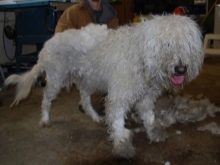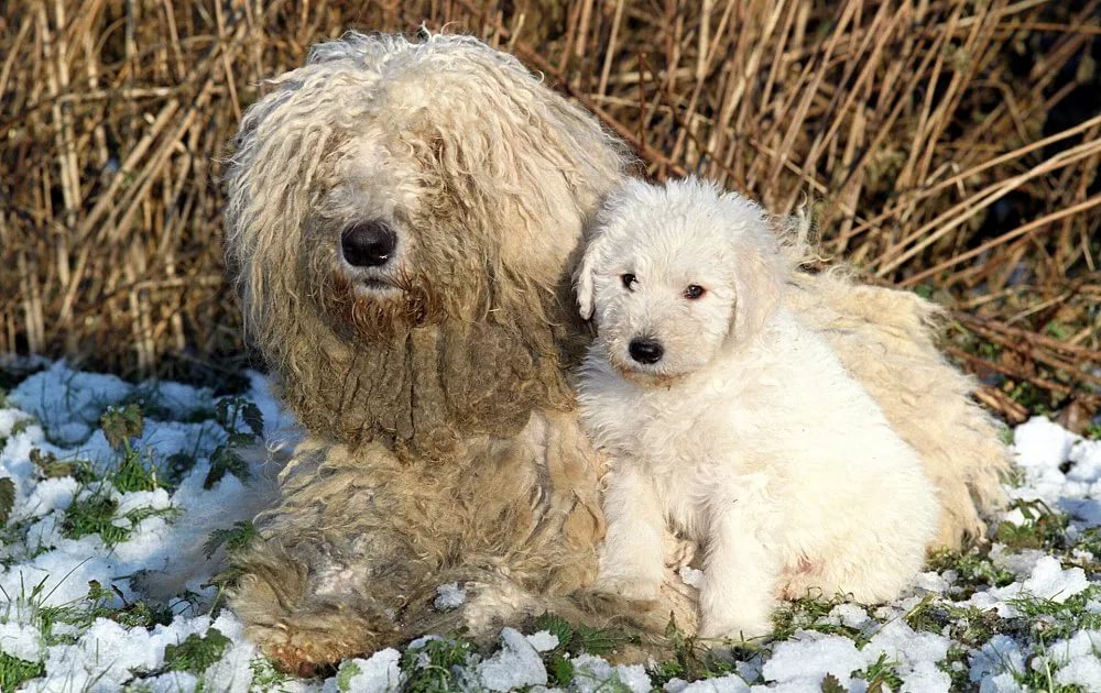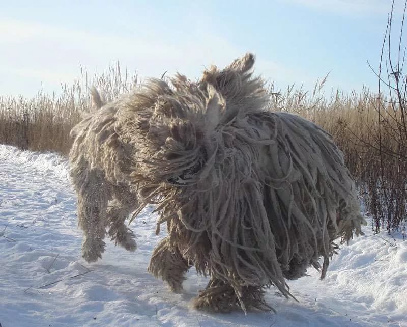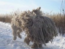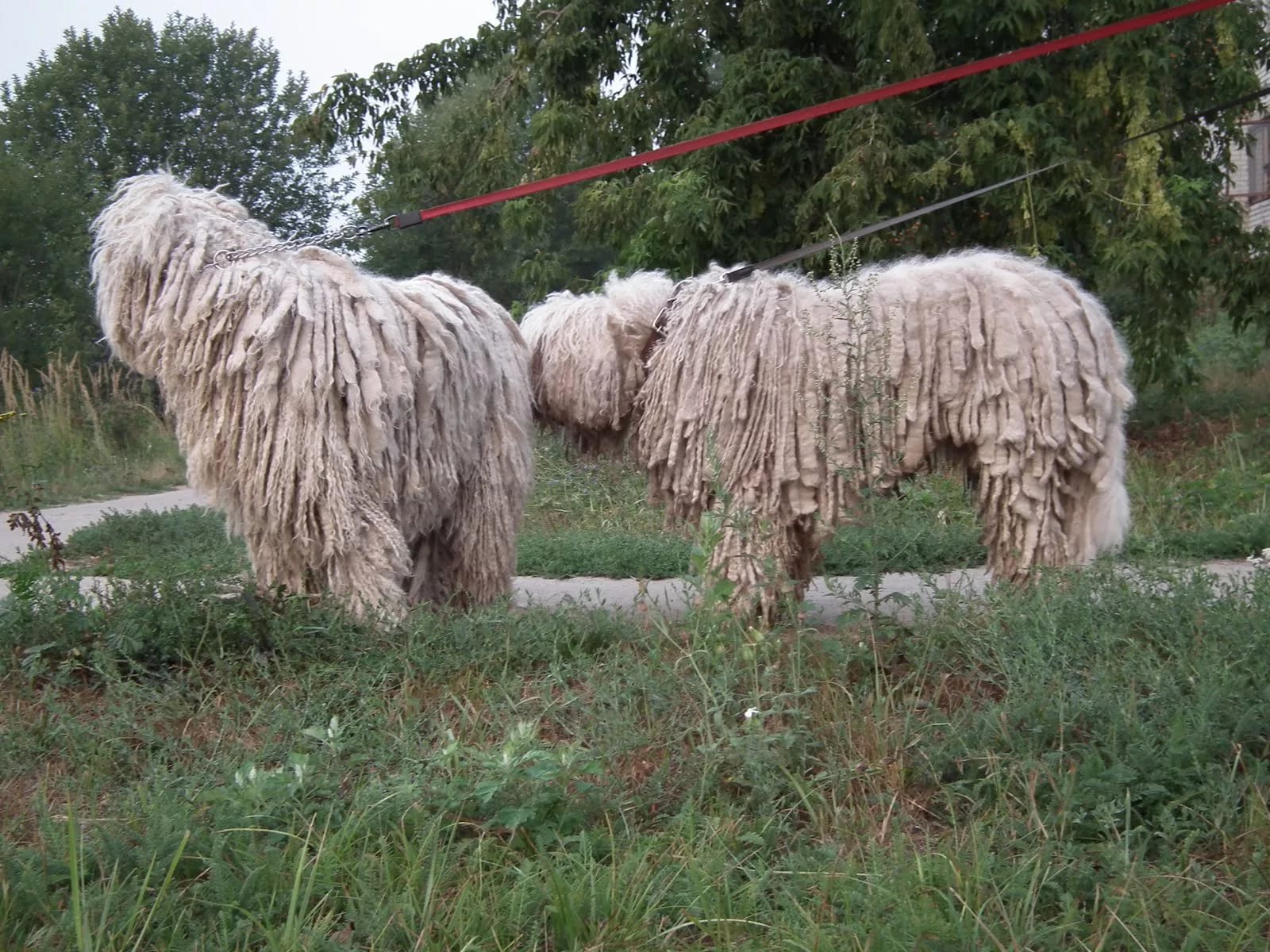 Komondor is a large and massive dog that has similarity with the Magyar sheepdog bullet. The newborn puppy of a Hungarian shepherd dog has a soft downy hair and soft guard hair, but in the process of growing up, the dog gets rid of the undercoat, and instead of the guard hair begins to be covered with long hair in the form of spirals. At the age of one and a half to two years, the dog is completely covered with dense rigid harnesses that are his fur coat.
