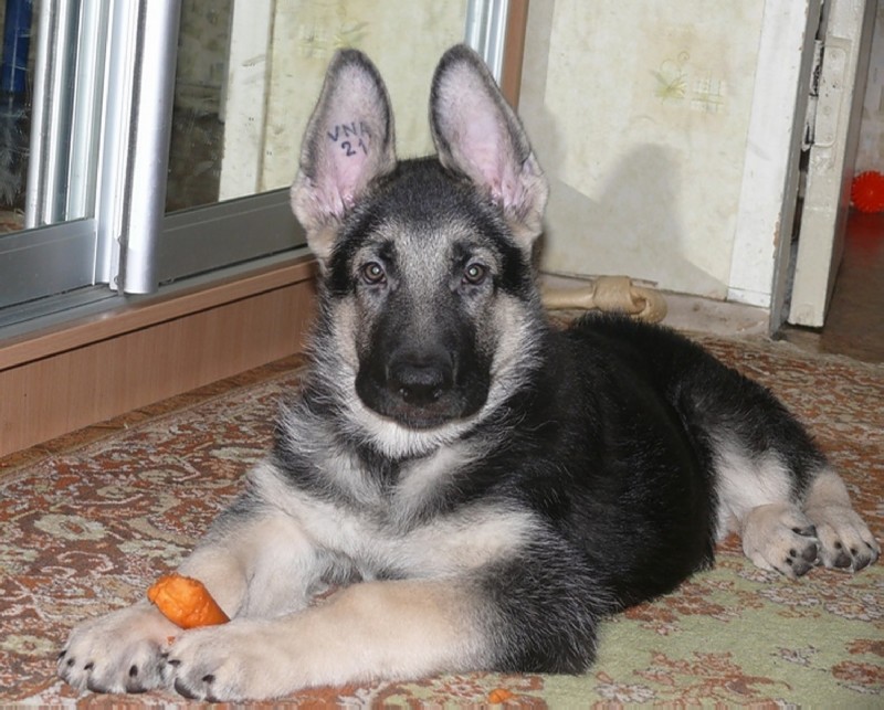 Below you can see the table, which shows the standard indicators of height and weight of the East European Shepherd for a certain age. As you can see from the table, at the age of 7 to 9 months, regardless of the gender of the dog, there comes a period of full maturity. After that, the dog practically does not grow, but only gains muscle mass. In dogs of the BEE breed, the ears stand at about half a year (individuals are known that have ears that stand unevenly, starting at 3 months). An adult bitch weighs, as a rule, slightly less than a male, while the male's muscles grow even after 1 year, and the bitch stops at 10-11 months.