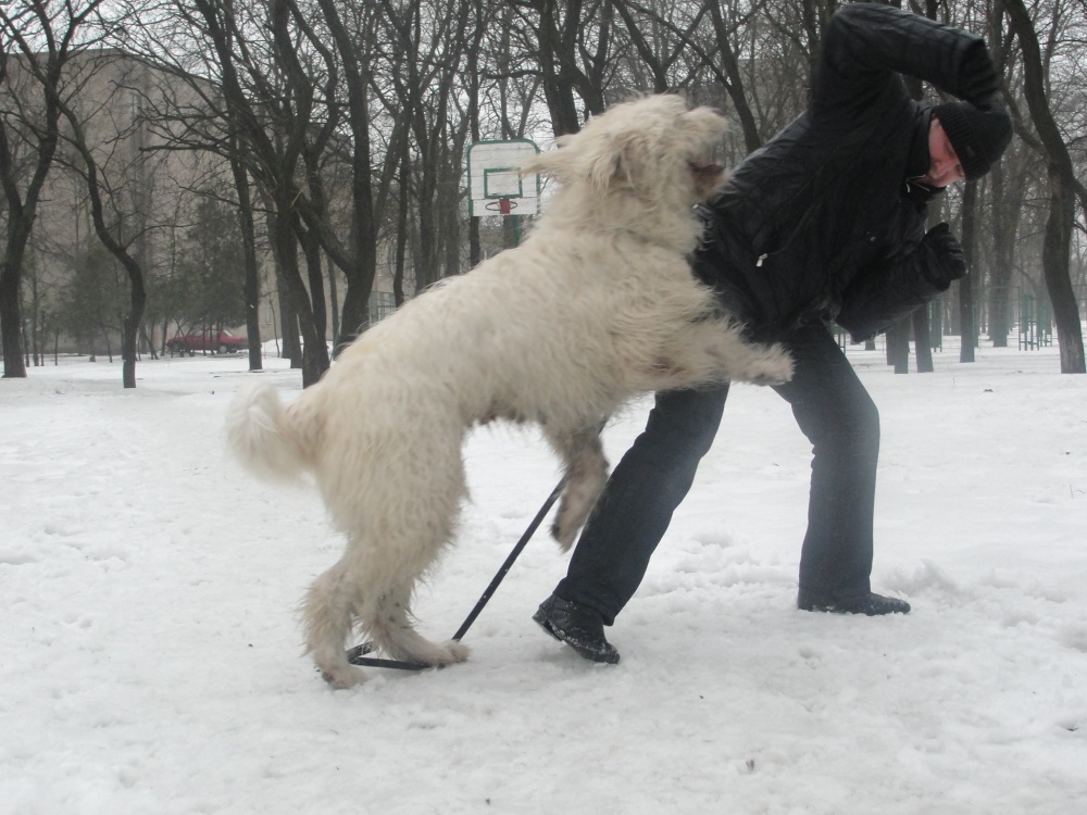 The South Russian Shepherd is suitable for training in protective and guard duty, but is inclined to independently use the acquired skills. Instead of one tight grip and fixing the victim, the dog makes several attacks that do not give the offender the opportunity to escape. It is rather difficult to resist such an onslaught, since the behavior of the animal does not fit into the framework of standard schemes.