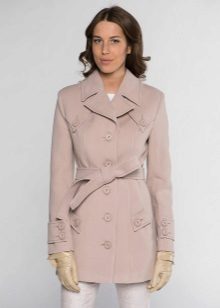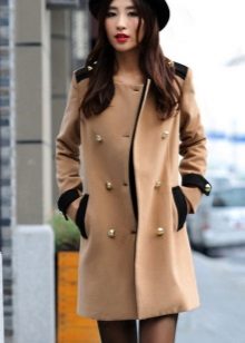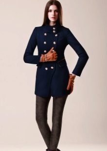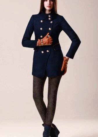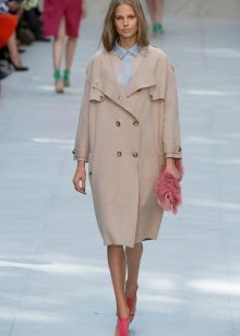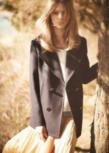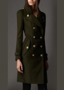 Its feature is the presence of a double-breasted clasp on large buttons. Although the English-style coat is a classic, the color of the buttons may be lighter or darker than the color of the product itself.