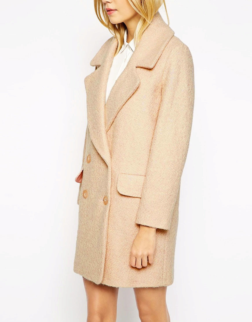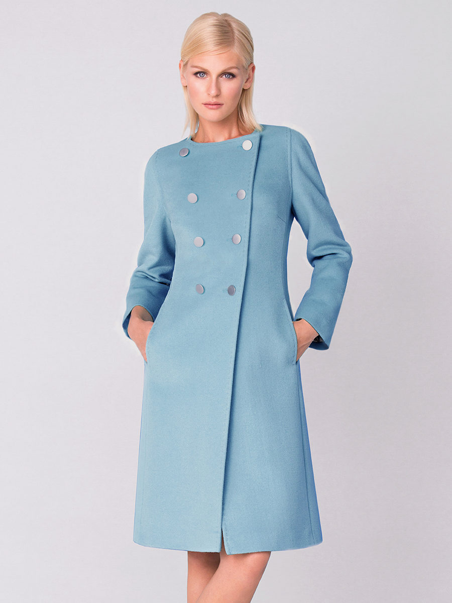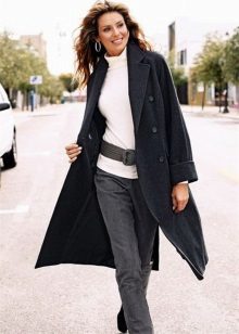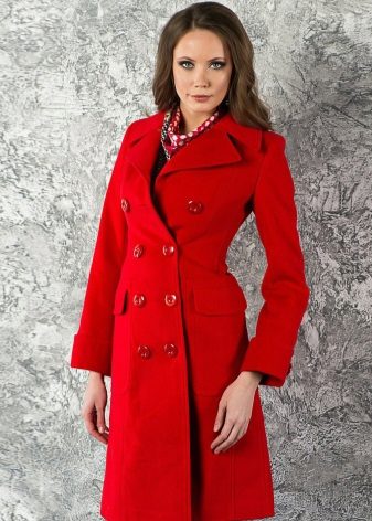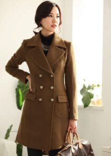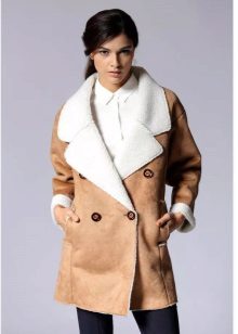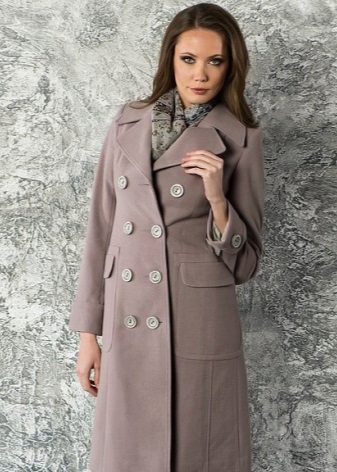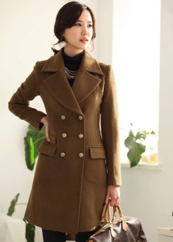 Another important feature of such a coat is the presence of a double-breasted collar, which can be of different lengths.