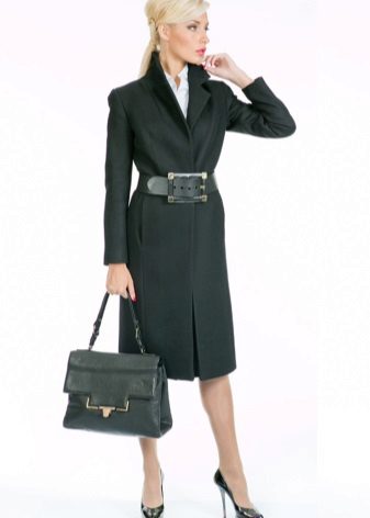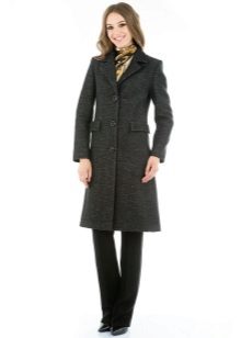 This style is called redingot. He has a straight silhouette that is slightly fitted. Often models are decorated with corbels. Without a belt, such a coat perfectly hides all the problem areas of the figure.