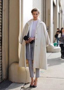 The color palette can be different, which allows you to choose a color depending on personal preferences. The classic shades of the English-style coat are white, black, gray, beige or cream. These discreet colors allow you to wear coats with different wardrobe elements.