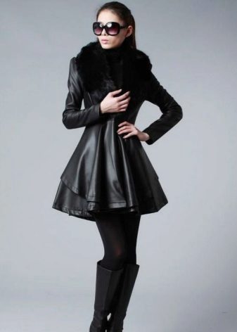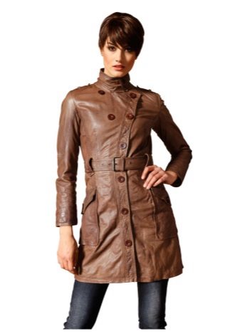 Some designers offer stunning models of coats in the English style of genuine leather or a variety of synthetic fabrics.