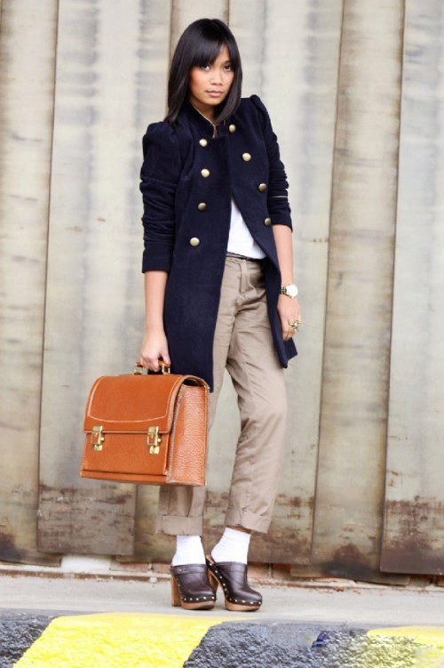 The classic cut of the English coat allows you to combine this style with many things to create unforgettable and stylish bows in different styles.