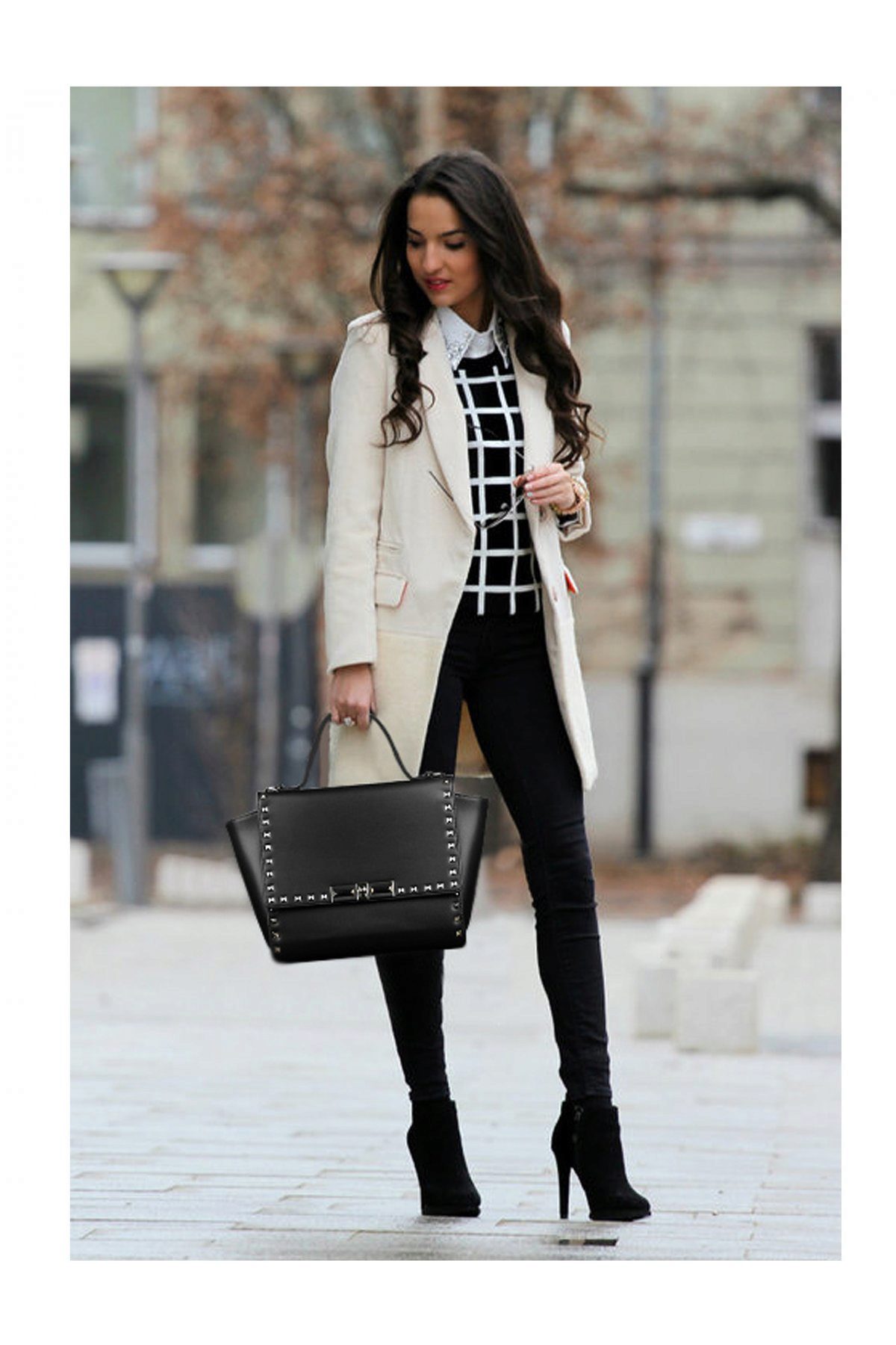 The perfect complement to a stylish image will be a clutch bag or a large bag.