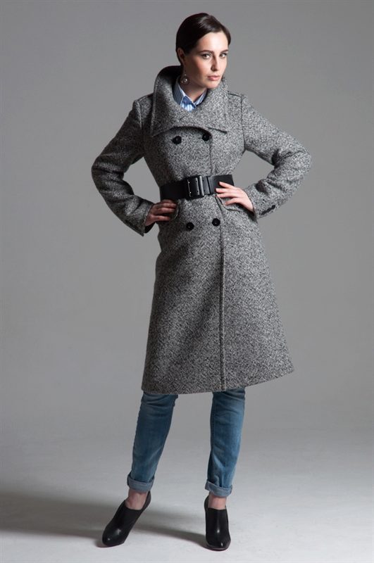 The most relevant model of the English coat can be called a model with an English turndown collar and slightly flared cut. You can choose options semifitted silhouette or with a belt.