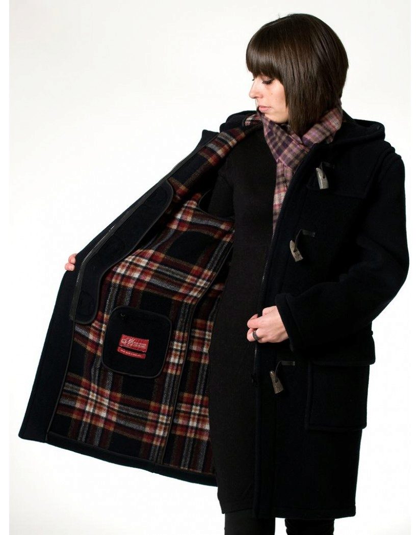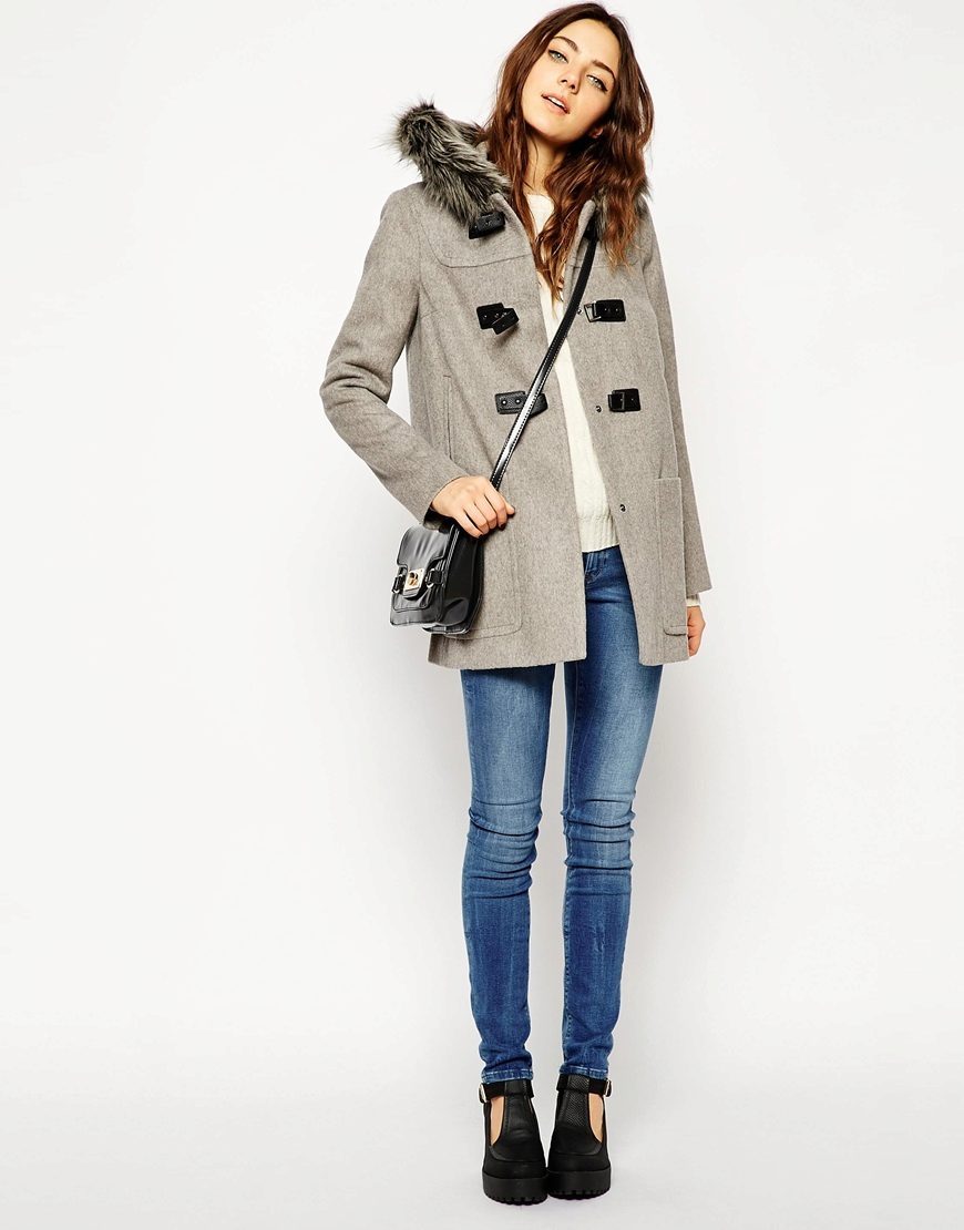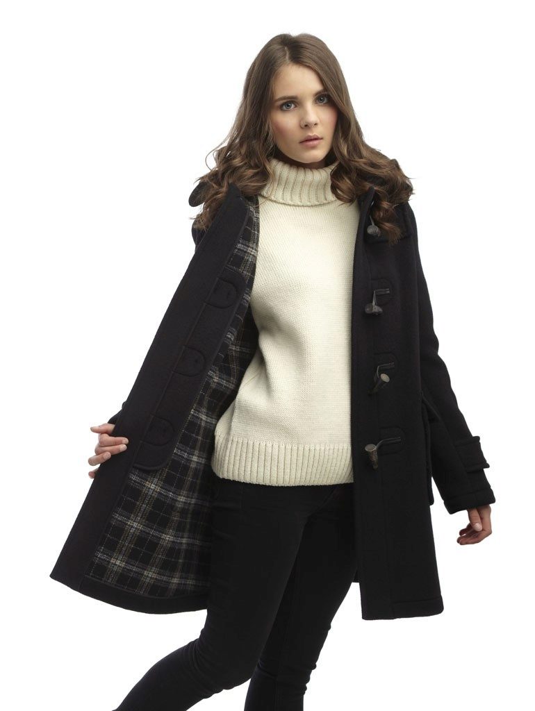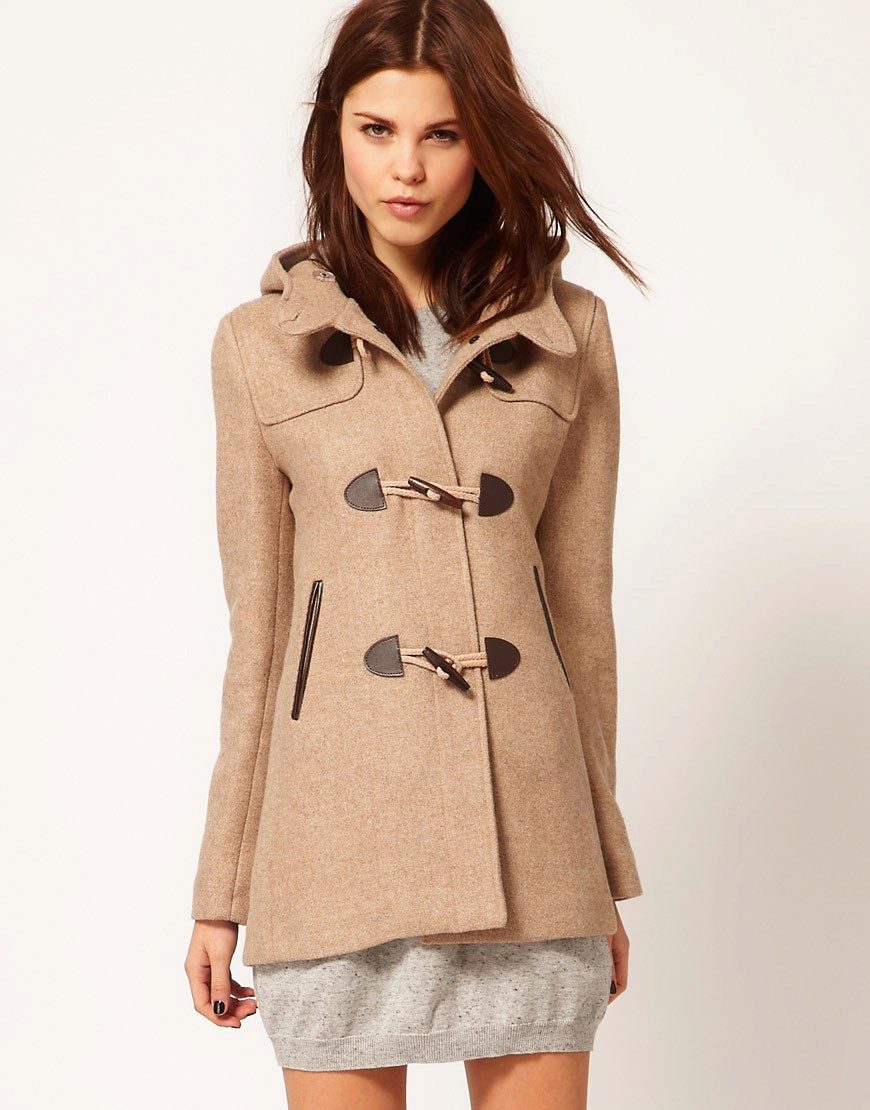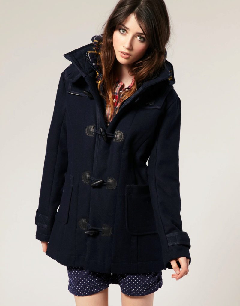 Lovers of a coat with a straight silhouette and with a hood should pay attention to the duffle coat. This model was worn by British sailors, so the hallmark is the walrus tusk clasp.