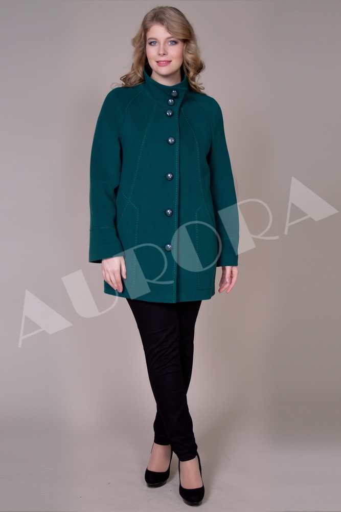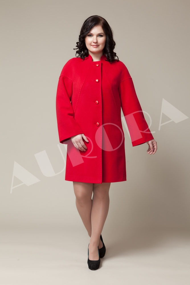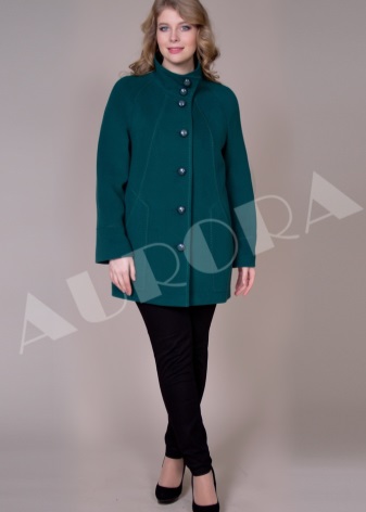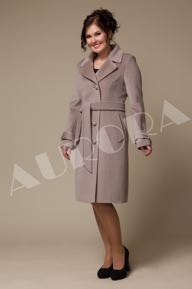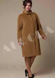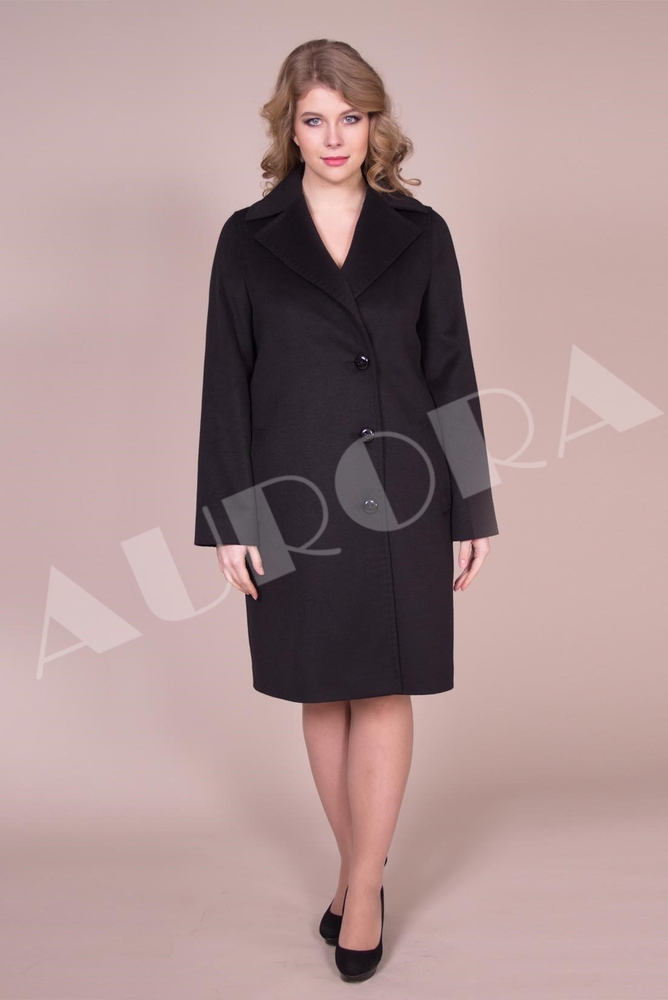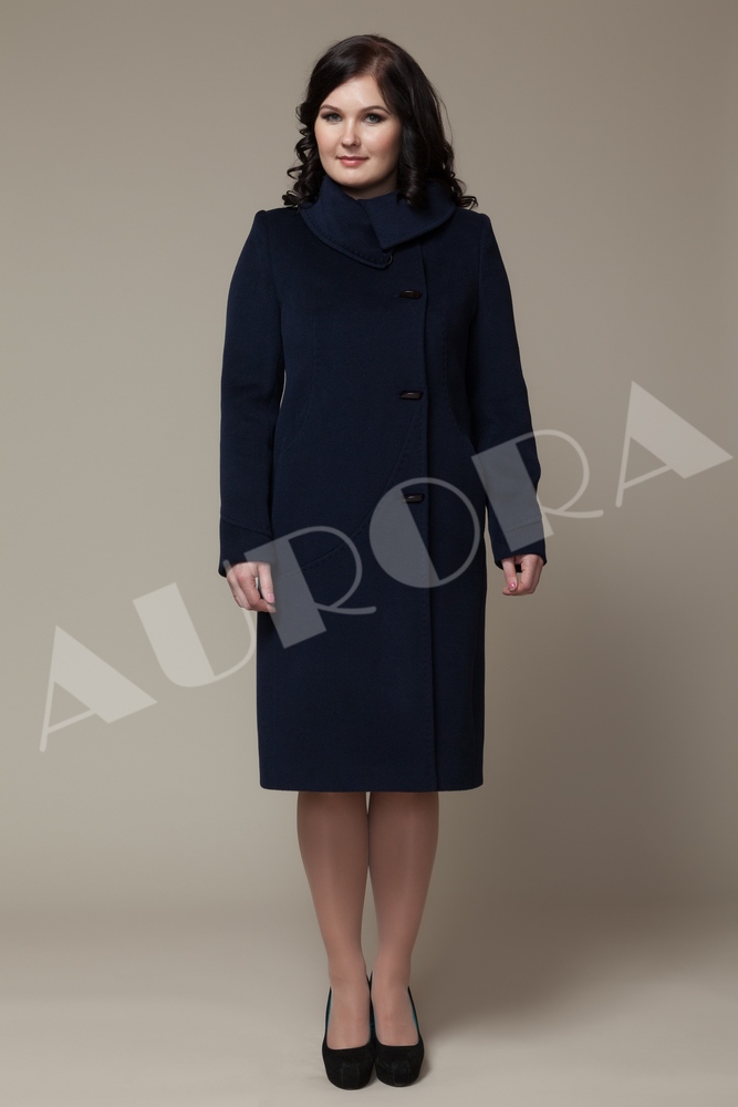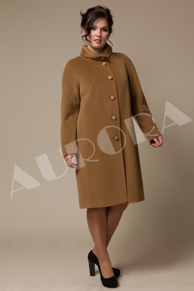 For owners of luxurious forms, Aurora has completed a free-cut coat with a lowered line of shoulders. Such a constructive solution, made in a trapezoidal silhouette, visually reduces the volume of the upper part of the figure, softening the shape.