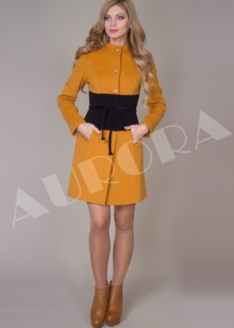 The chic of the season and incredible femininity is the elegant tenderness of the adjacent style without a collar. Such a bow with an original stitching and the absence of a collar allows all sorts of variations of the ensemble compositions with stoles or various scarves.