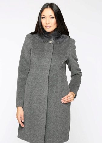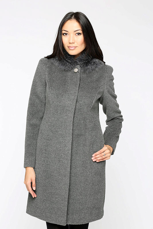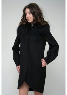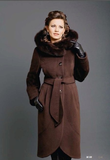 For ladies of elegant age, a collection of classic coats of straight silhouette with fur trim is presented. This model favorably emphasizes the dignity of the figure and allows you to hide small flaws.