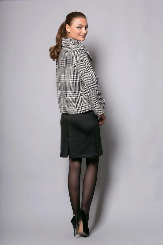 Lovers of youth style will certainly appreciate the shortened coat in a wide cage. Virginia wool and mohair are used as material for their tailoring. This coat is perfect for everyday wear.