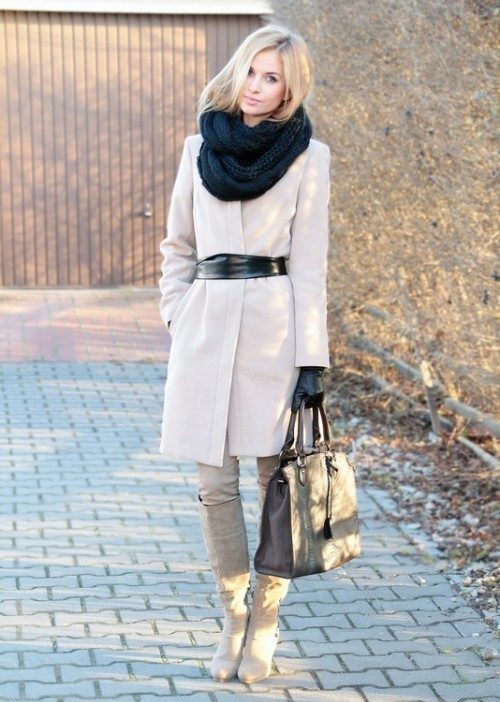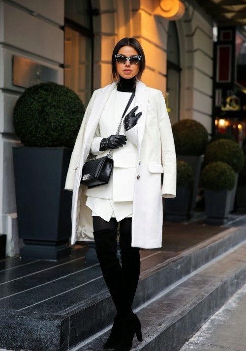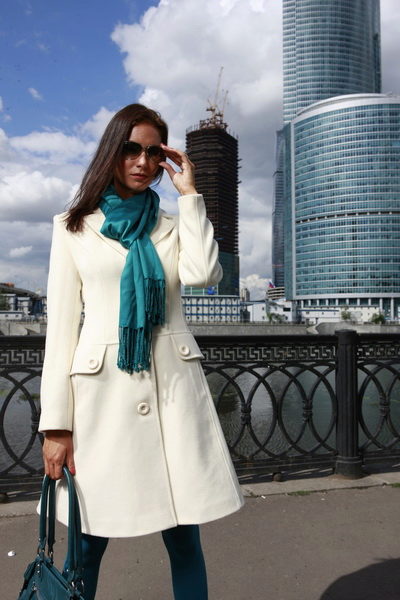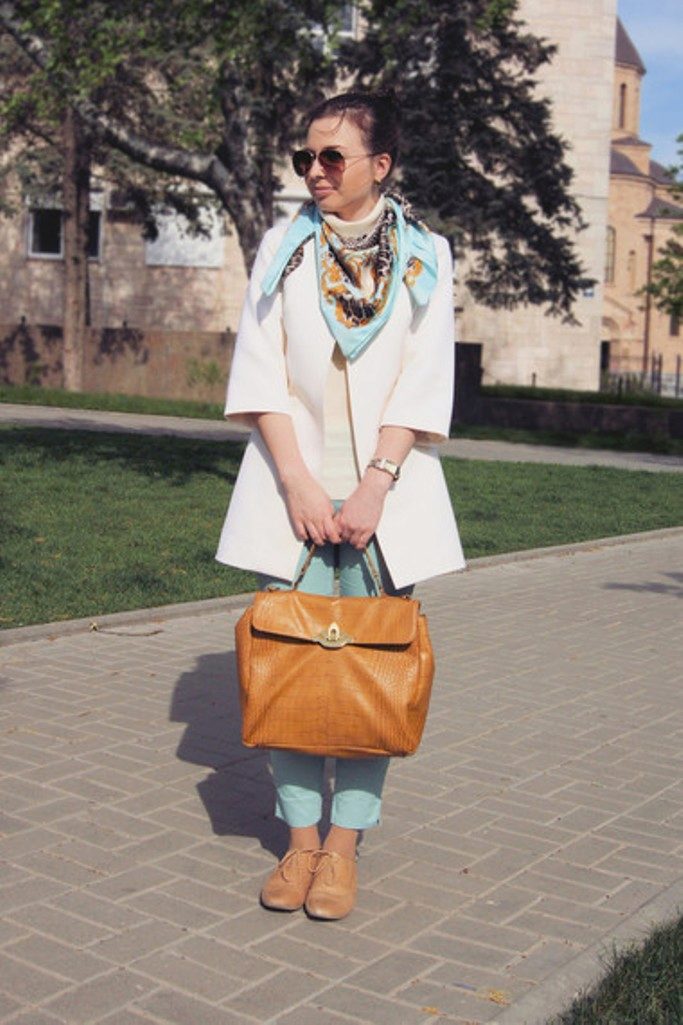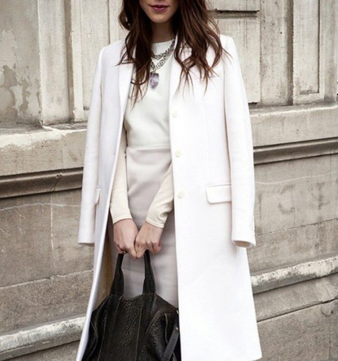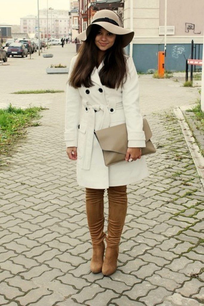Every season has its colors. This also applies to accessories that can complement your trendy look in a white coat. Gloves, bags and scarves of blue, burgundy red are well suited for winter. In the spring you can buy green, blue and pink things, and in the fall orange and coral.