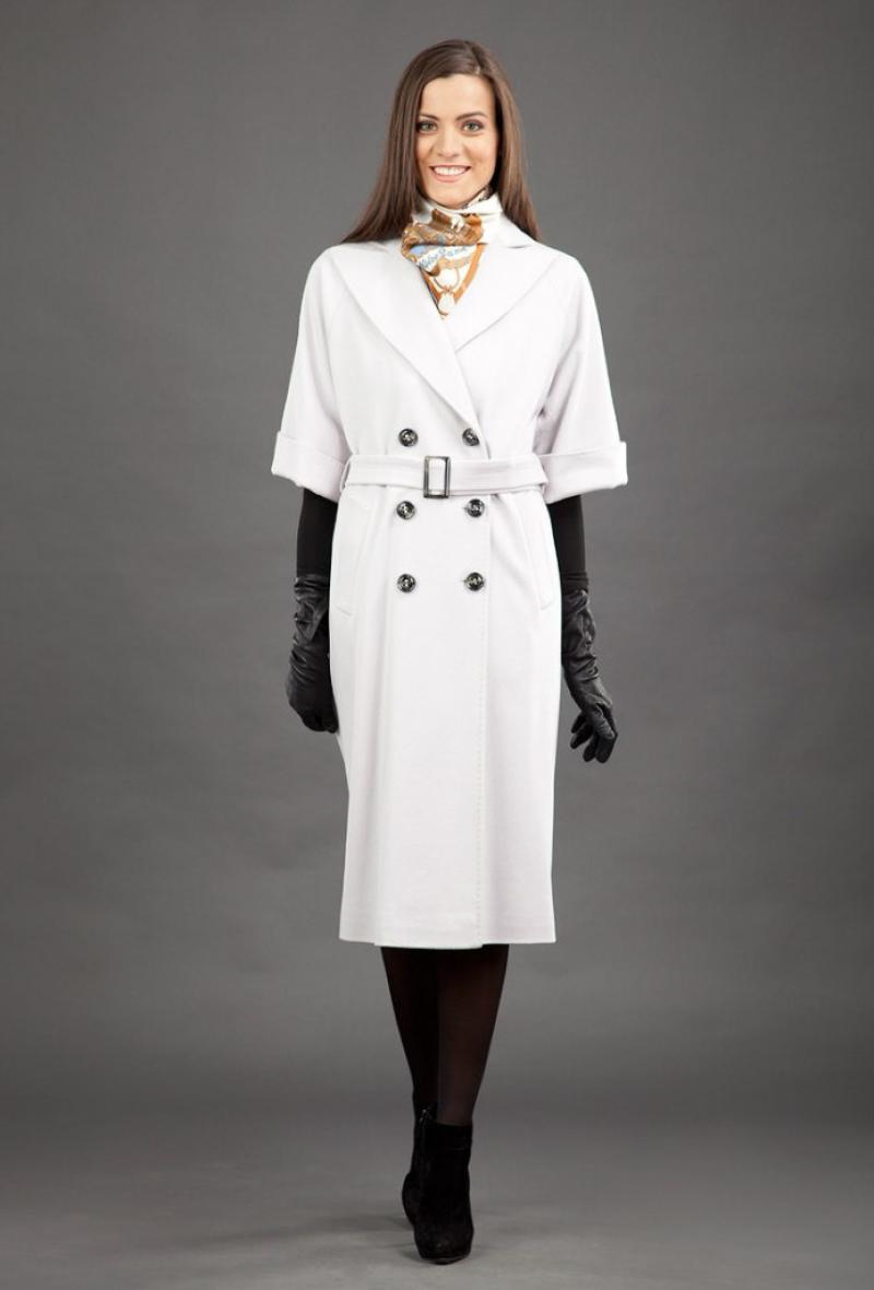 Long gloves are simply necessary when the sleeve is shortened. For a coat of cashmere and wool, you can pick up knitted plain gloves. These can be black, burgundy or red. A very chic stylists consider the combination of a white coat with leather gloves rich purple color.