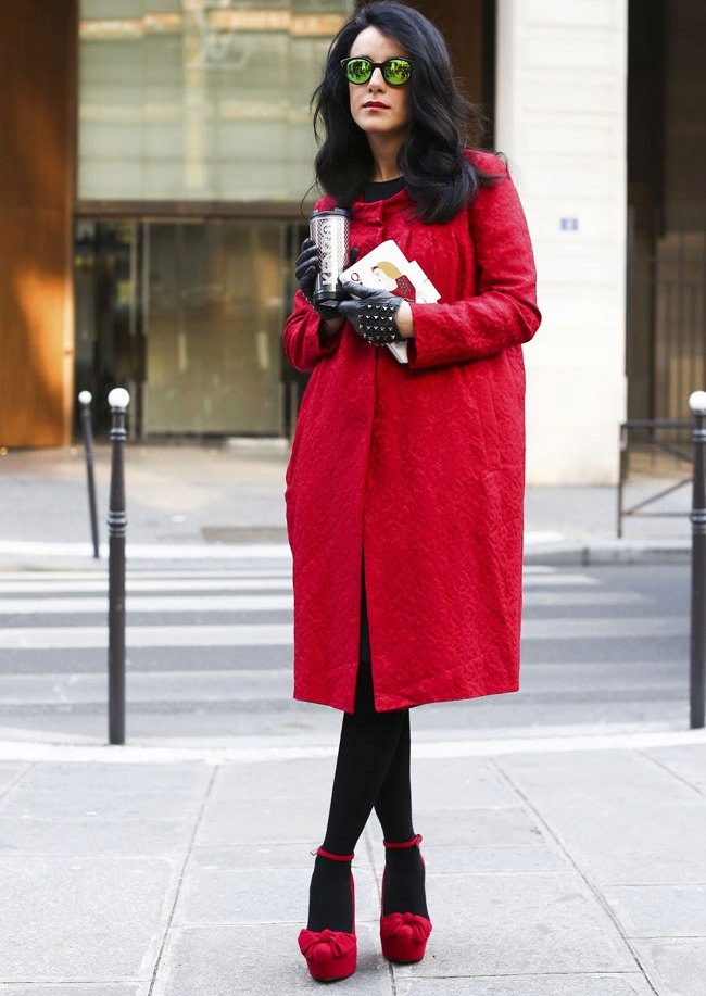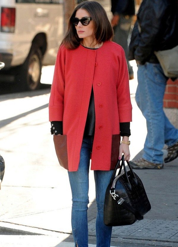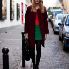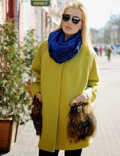 A bright coat should not blend with the color of other clothes. If even create an image in a single color, then you need to take care of the transition of shades, which should be clear and expressive.