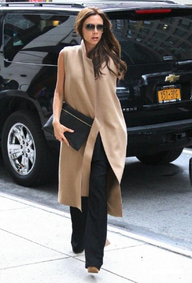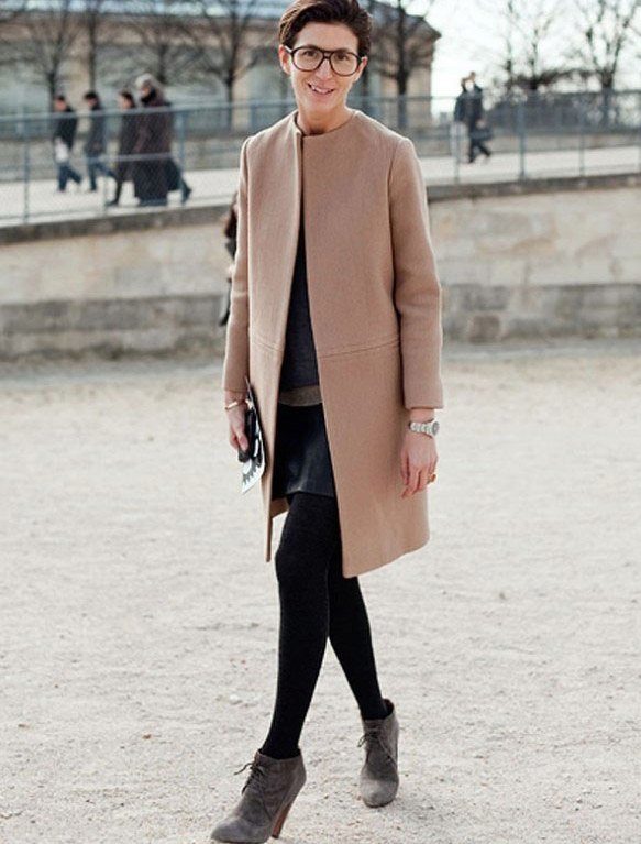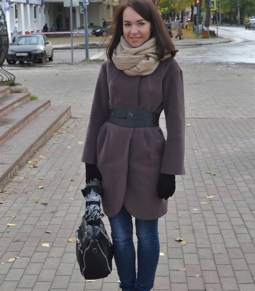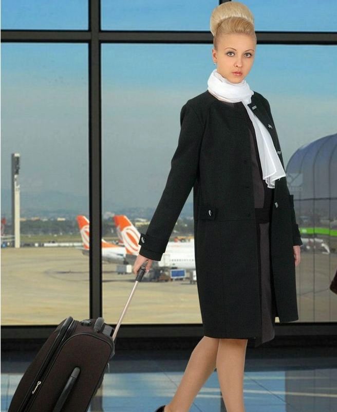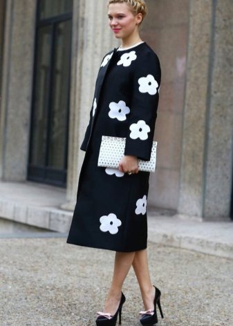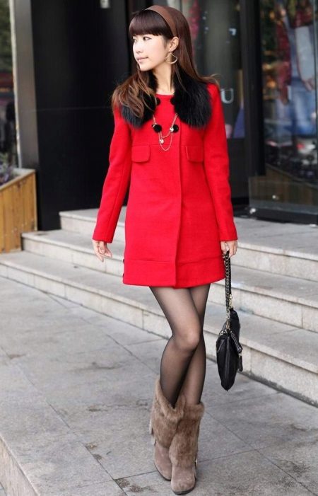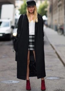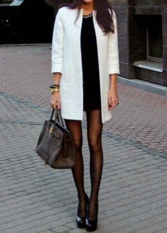 If the coat is made by straight cutthen the skirt or dress should not peek out from under the coat. Be sure to follow this, because such a small detail can ruin even a very well thought out image.