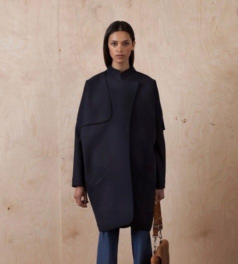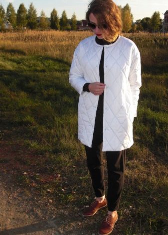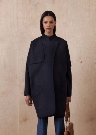 Designers decided to return this thing to the podiums, only slightly modifying it and presenting it in a slightly different light. A modern coat without a collar is recognizable by three signs, which are taken as the basis for creating the next model: