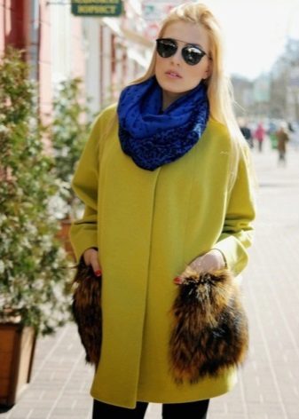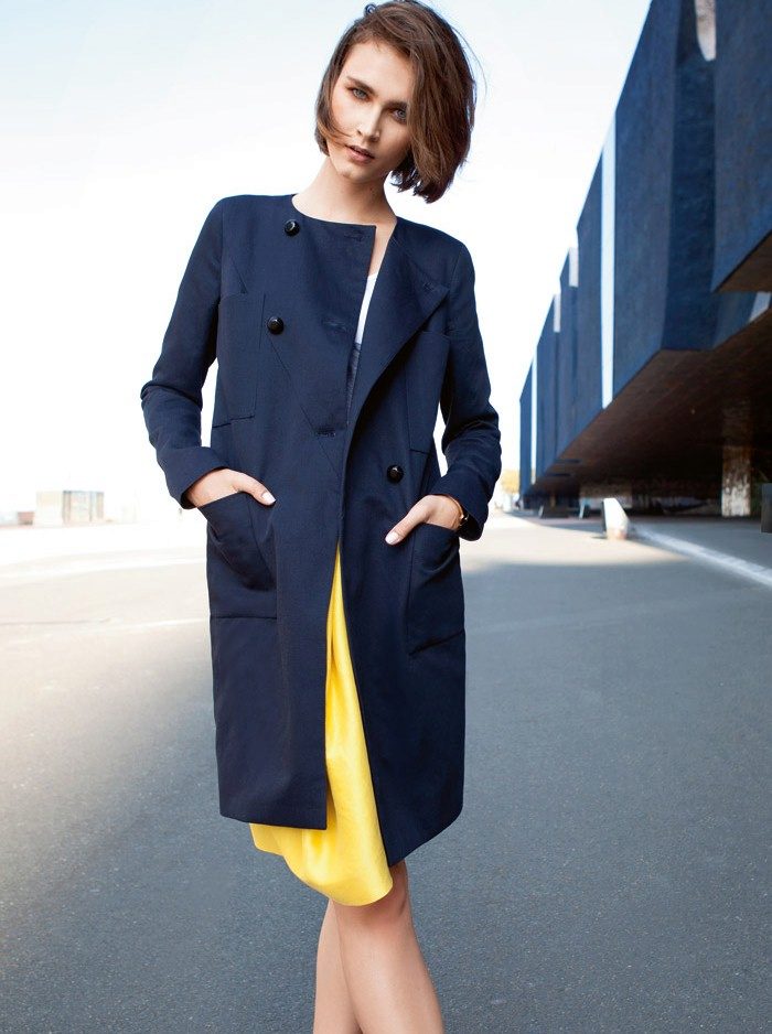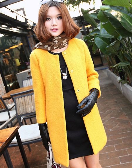 Do not be afraid of bright colors when choosing an autumn coat. Against the background of a gloomy city, sad weather and passers-by dressed in dull colors, you will be wearing a coat without a collar, but with bright colors, you will be like the sun, fresh wind or a clear sky. So it is definitely worth choosing a coat with bright colors, for example, yellow, which again becomes more and more relevant, and all its shades.